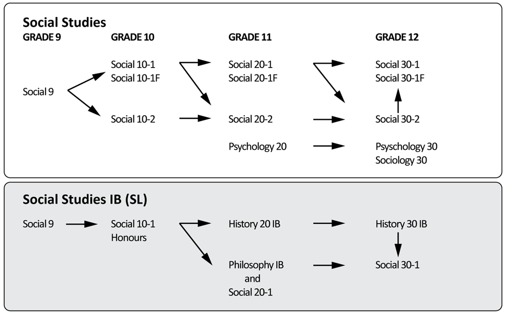 These courses are accepted by some post-secondary institutions for particular program entrance requirements. They are intended for students whose career/ educational paths do not require the higher level program or who have experienced difficulty with Social Studies. Students who receive less than 3 in Social 9 and students who receive less than 60% in